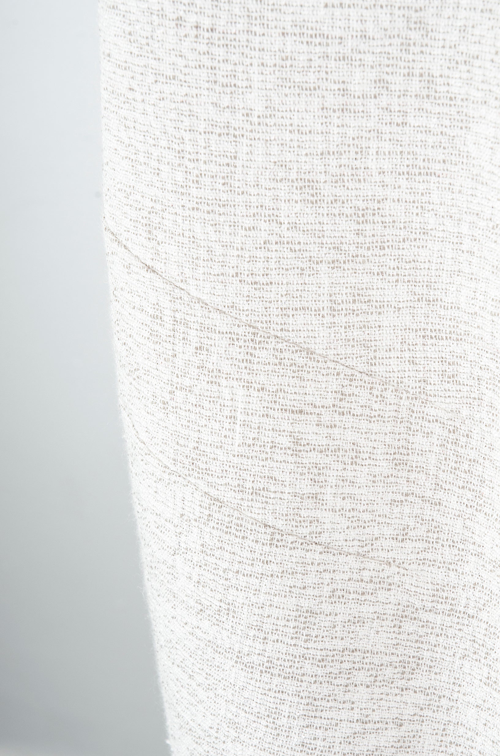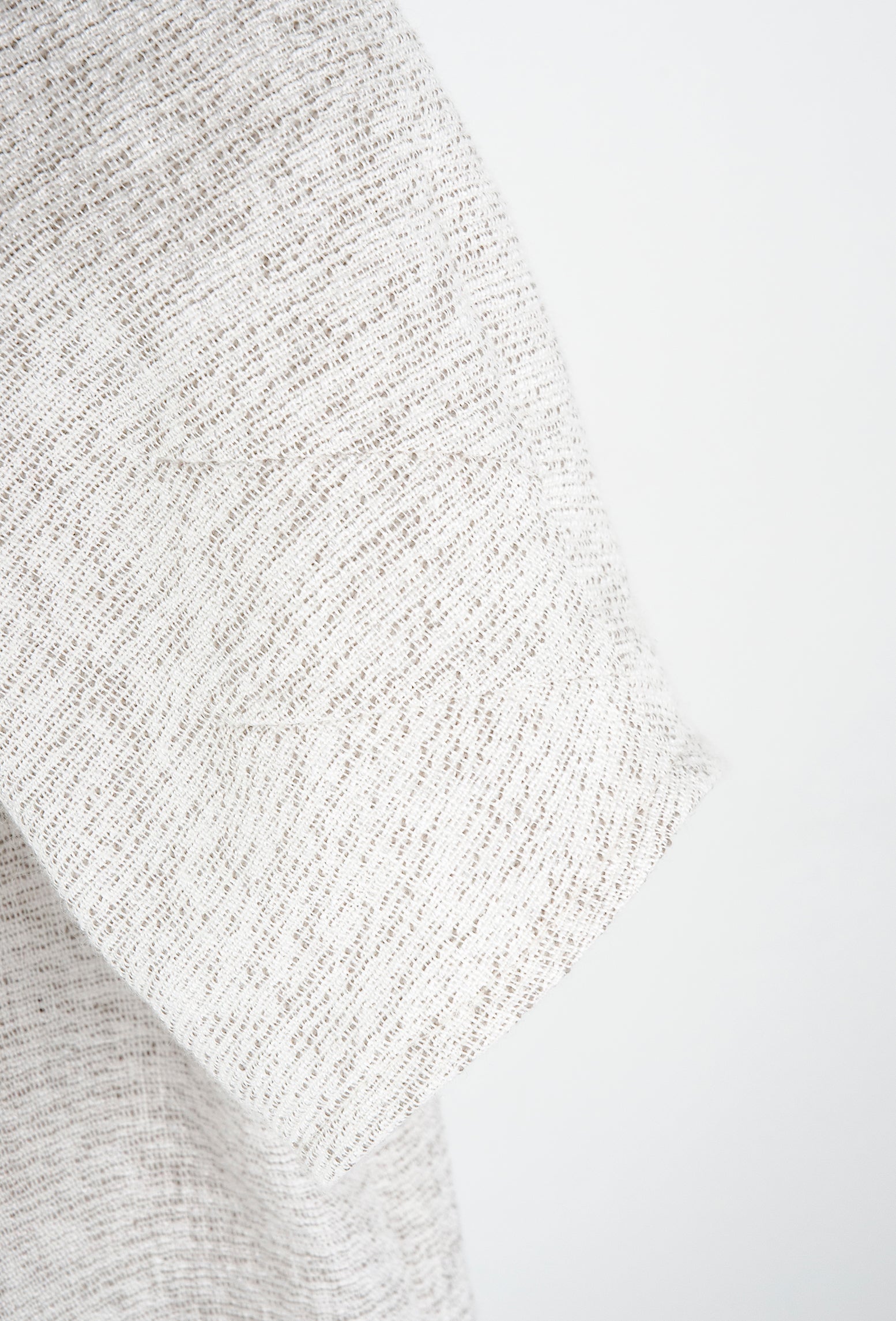 50% silk 50% linen. Colour: Opal Gray No lining. Short sleeves.